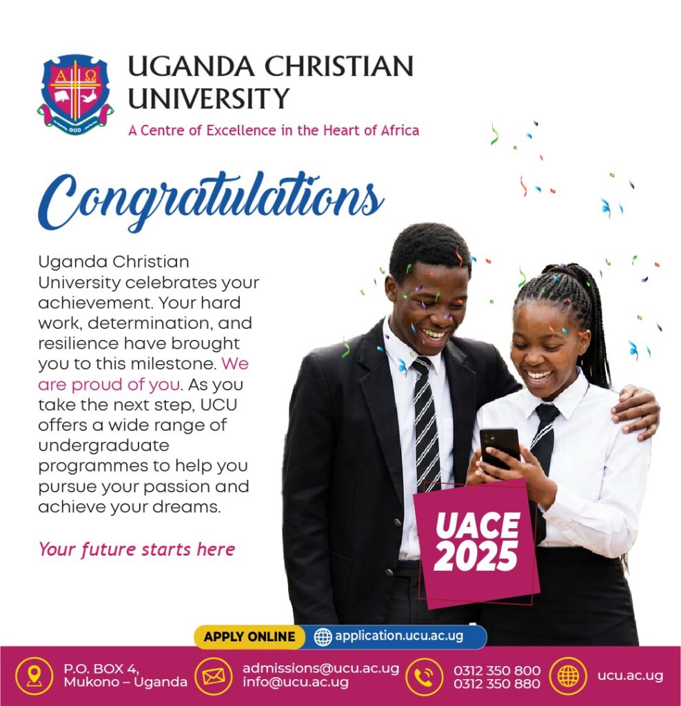 For inquiries: Call: 0312350880 OR 0312350800/ Email: admissions@ucu.ac.ug