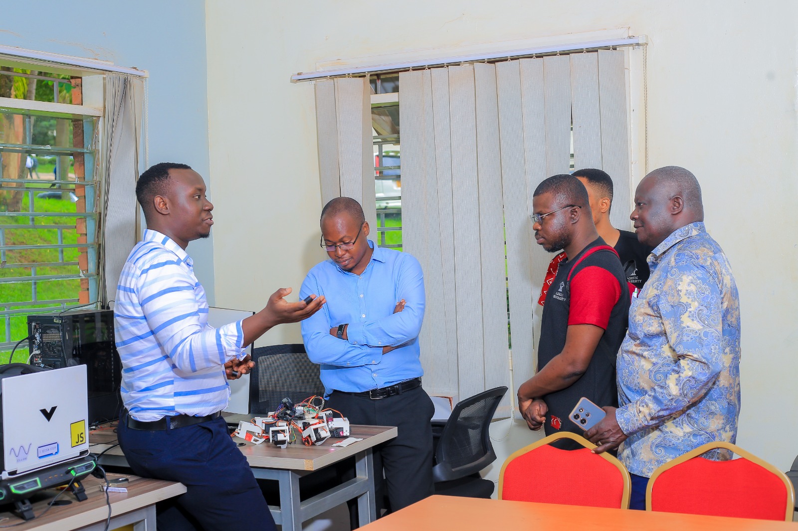 During their visit, the Ashesi delegation toured UCU’s innovation spaces, where they observed advanced student projects in robotics and mechatronics. The tour offered a first-hand look at the practical, hands-on engineering culture that UCU has cultivated and showed the university’s readiness to support a graduate-level programme in this discipline.